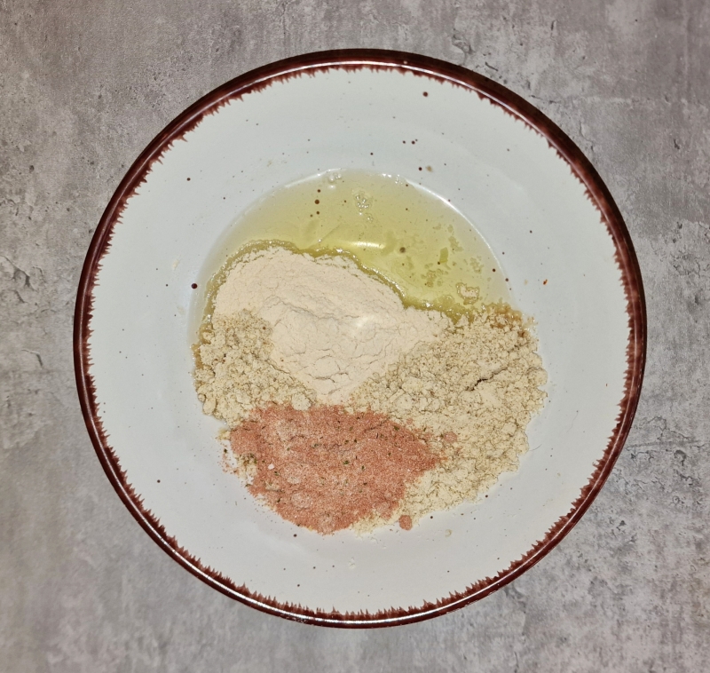 Eiklar nach Anleitung von der Packung zubereiten (oder frisches Eiklar verwenden), Zitrusfaser, Pfannkuchenmischung, Suppentraum (Suppentraum kann nach eigen Geschmack gewählt werden, empfehle aber Tomate oder Blumenkohl Curry) hinzufügen, mit einem Löffel verrühren. Es wird so eine Art Paste. Auch in die Schüssel zu den Garnelen hinzufügen.