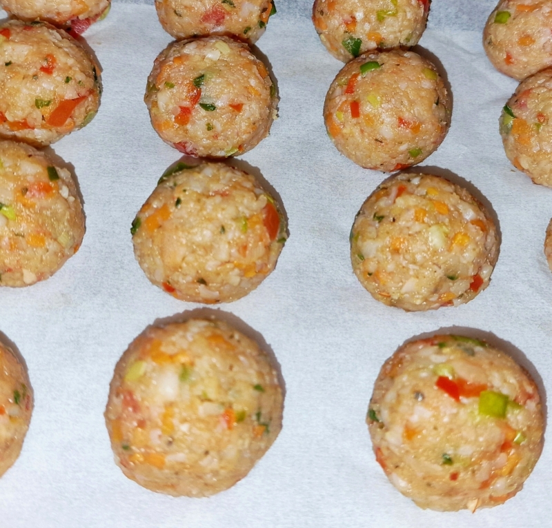 Ich hab ca. 25g Bällchen gedreht und sie auf ein Backblech mit Backpapier ausgelegt gesetzt. Bei 150 Grad Umluft für 35 Minuten backen. Nach dem Backen, die Backofentüre öffnen und im Backofen auskühlen lassen.