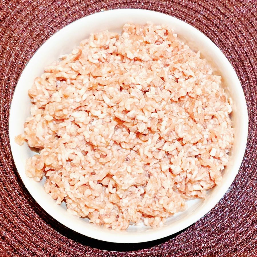In einer Pfanne Ghee schmelzen lassen, Zwiebel und Petersilie anschwitzen, Hackfleisch aus Geflügel/Rind und gepressten Knoblauch hinzufügen, scharf anbraten.