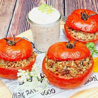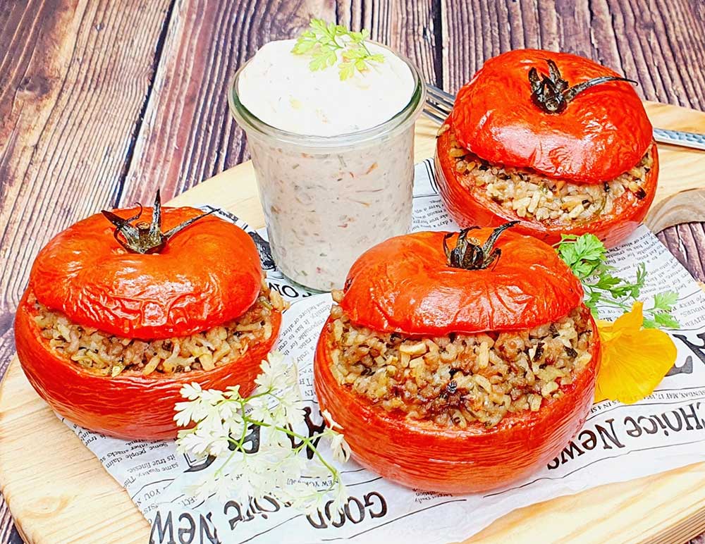 Ergibt 3 Hauptmahlzeiten mit je 2 gefüllten Tomaten.
