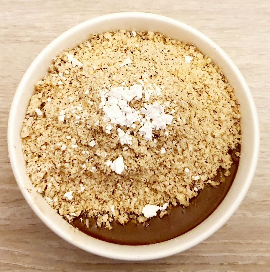 Für die Fülle Haselnussfix, Nuketo und Low Carb Süße Puder miteinander vermengen und im Kühlschrank fester werden lassen.