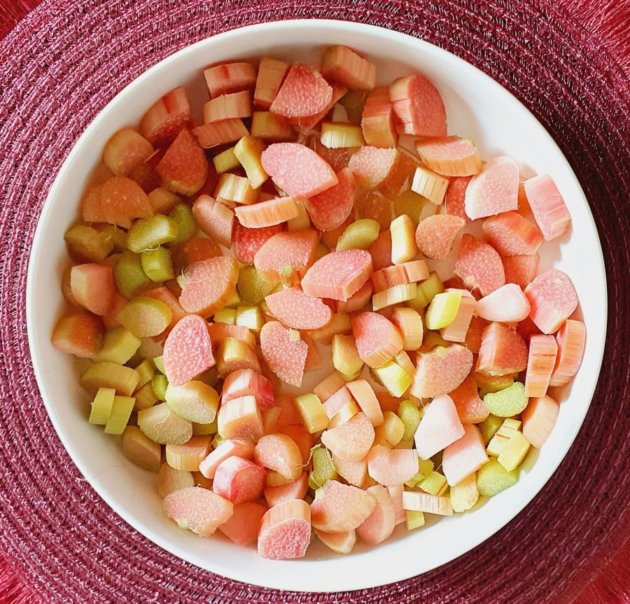 Rhabarber schälen und klein schneiden. In einer Pfanne die 5g Butter und die 10g Karamelltraum schmelzen lassen. Rhabarber hinzufügen und auf hoher Flamme kurz aufkochen, umrühren und ca. 2/3 aus der Pfanne nehmen, auf einem Küchentuch abkühlen lassen. Der restliche Rhabarber kann inzwischen in der Pfanne bleiben.