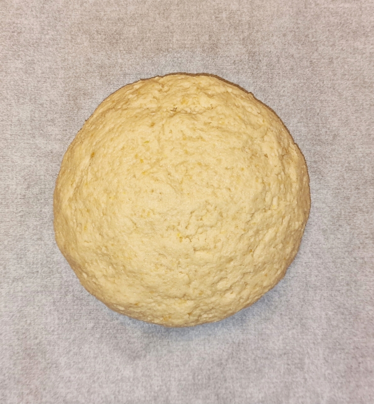 Für den Boden Mandelteig, Süße, Eier, Abrieb der Zitrone, Pure Flavour und weiche Butter zu einem Teig verkneten.
