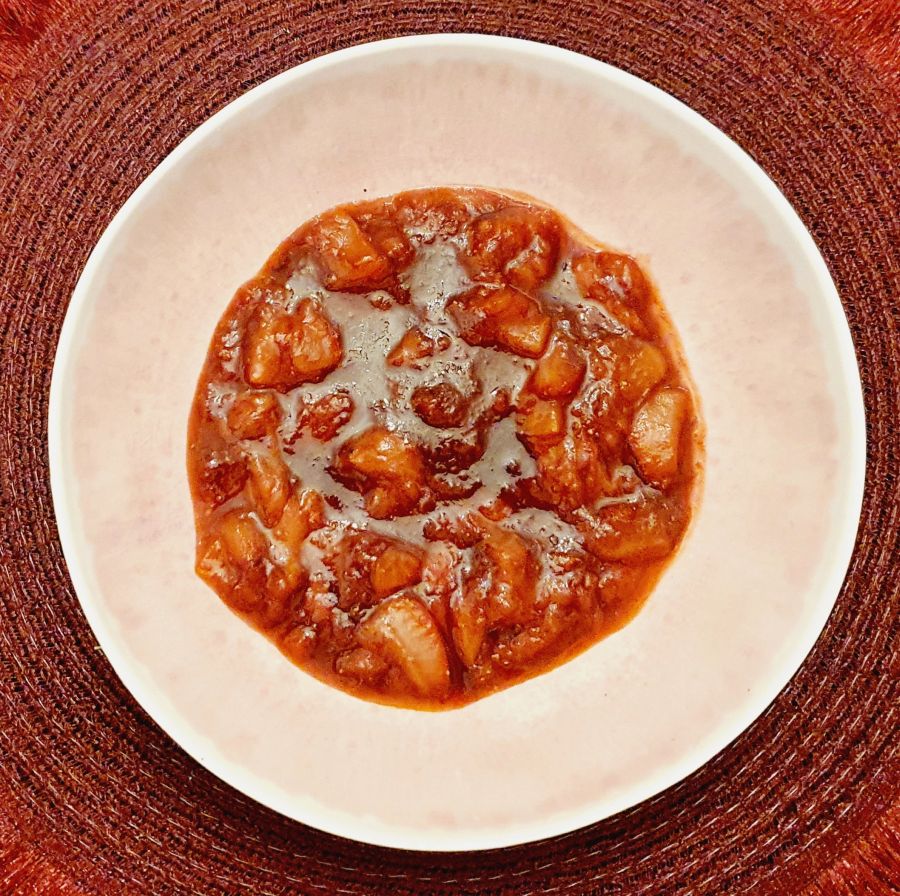 Butter und Karamelltraum in einer Pfanne schmelzen, Rhabarber und Erdbeeren hinzufügen und auf heißer Flamme aufkochen, Orangensaft hinzufügen und Rhabarber weichköcheln bist die Flüssigkeit fast verkocht ist. Mit Sahnepudding eindicken, kurz aufkochen und zur Seite zum abkühlen stellen.