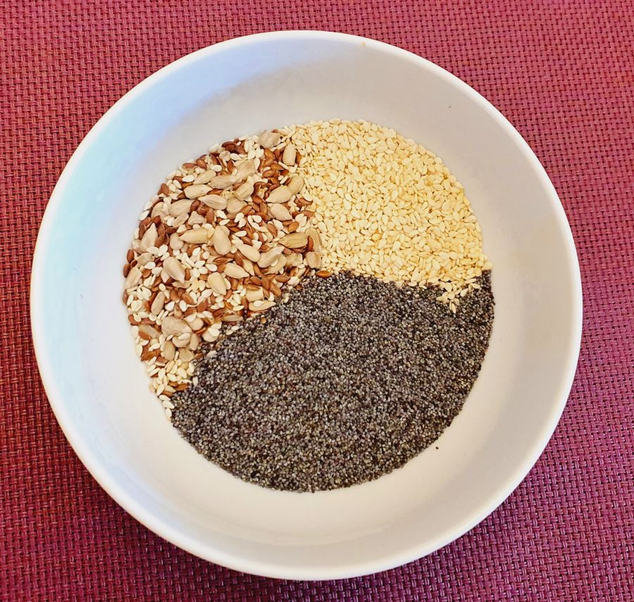 Ein Laibchen formen und mit Saaten oder Bambusfaser bestreuen.