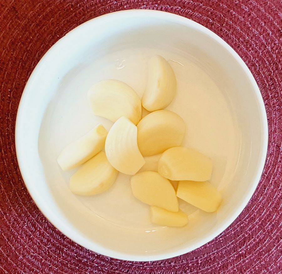 Mit einer Gabel die Knoblauchmischung gleichmäßig verteilen.