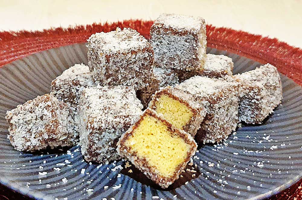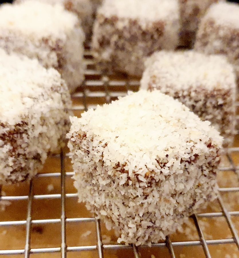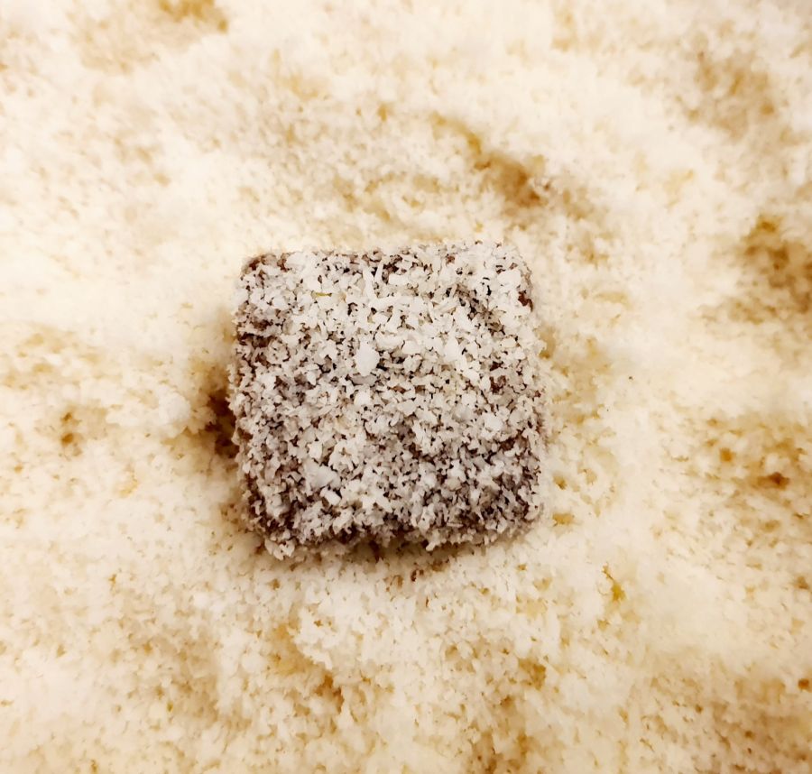 In Kokosflocken wälzen.