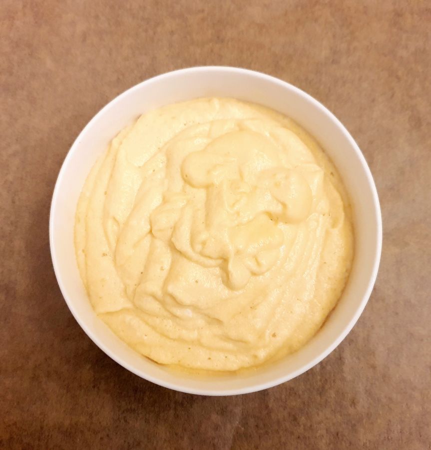 Eischnee und Mandelstaubmischung sehr vorsichtig mit einem Löffel unter die die Eigelbmasse ziehen.