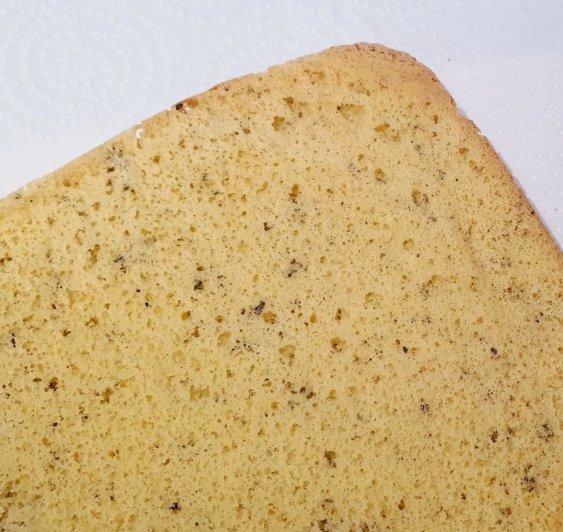 Nach dem Backen stürzen und vorsichtig das Backpapier abziehen.