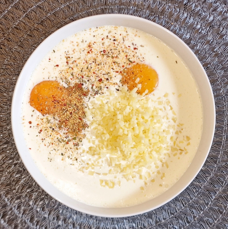 Für die Fülle Schlagobers, Ei, Zitrusfaser, geriebenen Käse, Gewürze miteinander verrühren, das Kraut untermengen und gut verrühren.