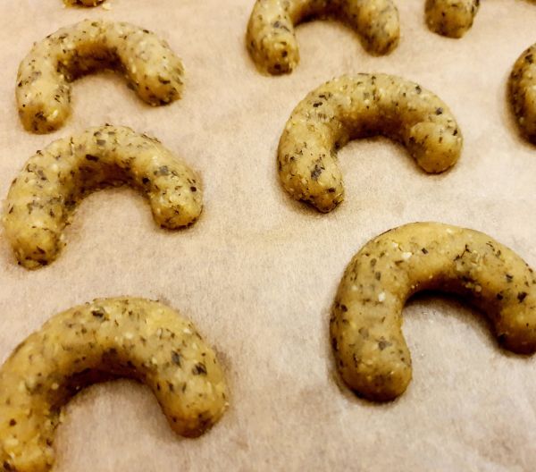 Sollte man keine Form besitzen, den Teig 2h im Kühlschrank ruhen lassen und danach Kipferl herstellen.