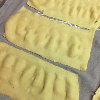 Lasagneplatten entweder per Hand oder mit dem Pastamaker herstellen. Die Platten werden frisch weiterverarbeitet!