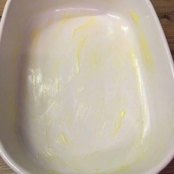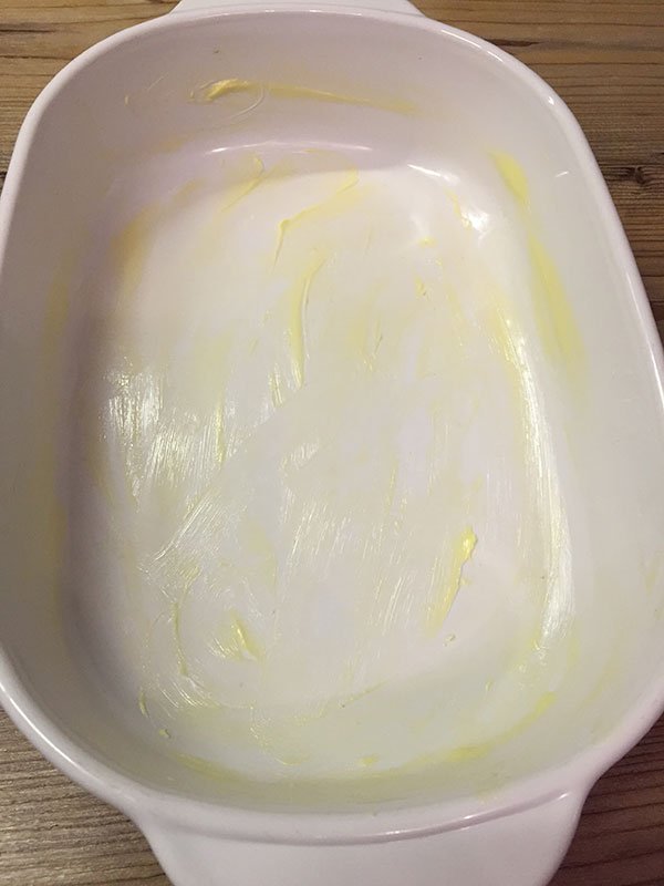 Eine Auflaufform in der Größe ca. 30 x 20 cm mit Butter einfetten.