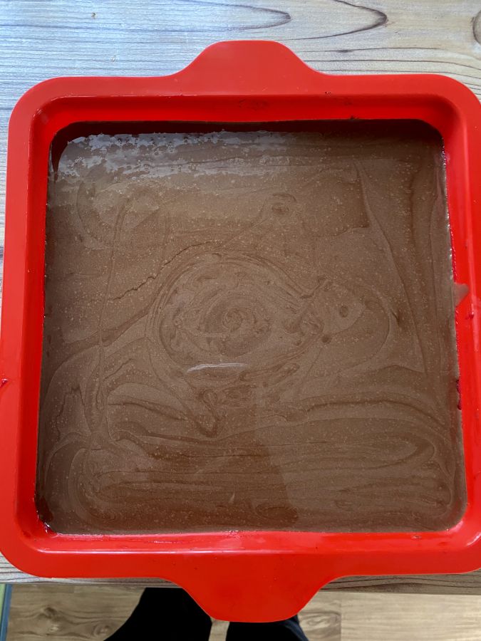 Den Teig in die Silikonform streichen.