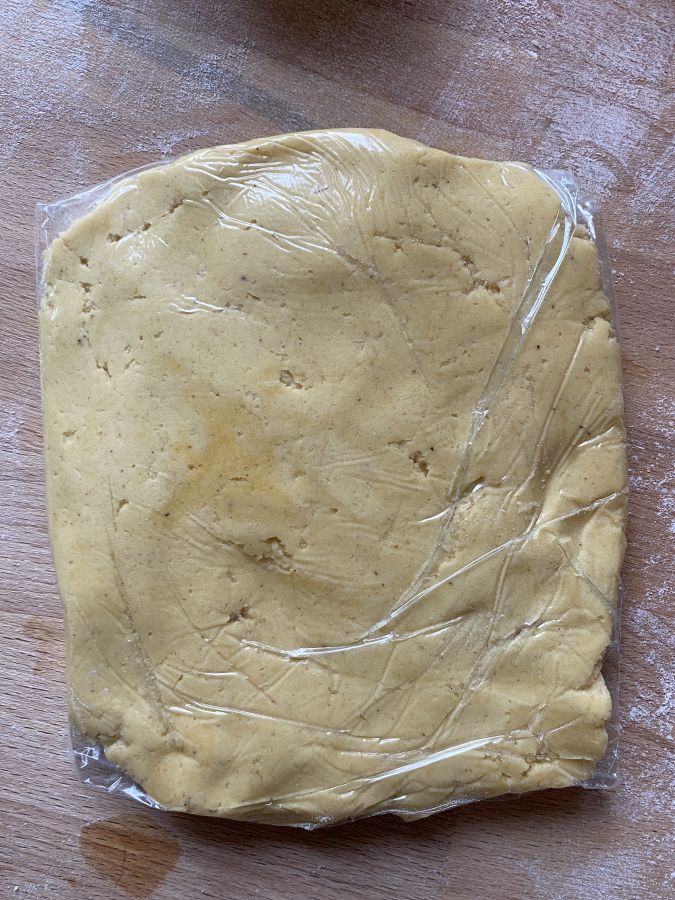 In Frischhaltefolie einwickeln und 2h im Kühlschrank ruhen lassen.
