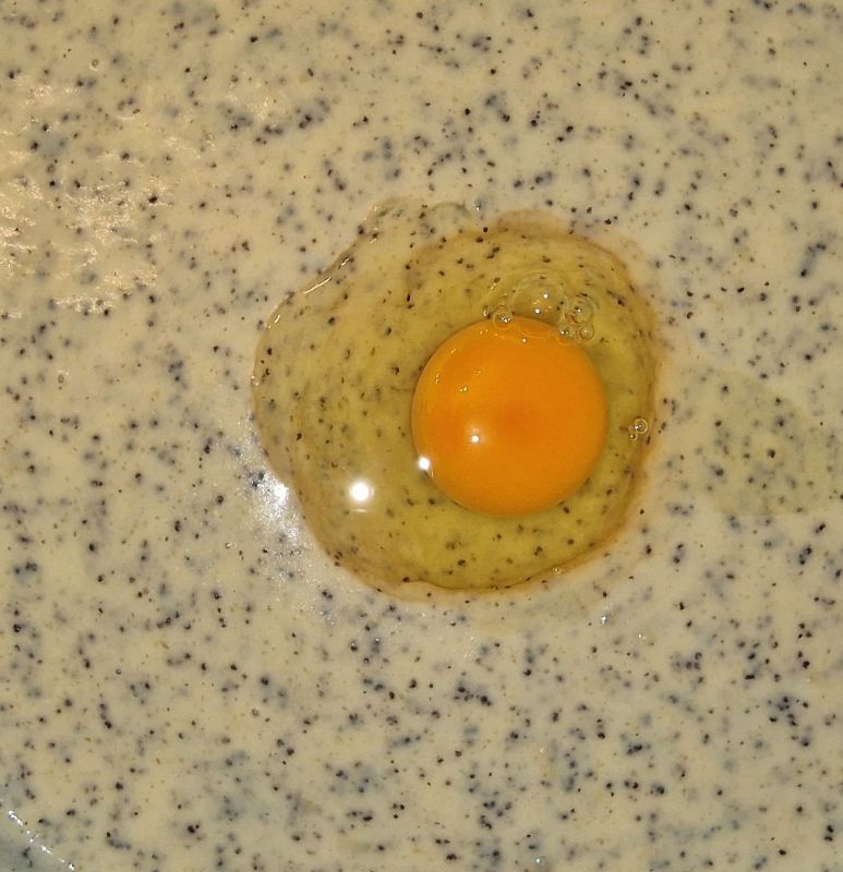 Mandelteig, Bambusfaser, Süße und Mohnfix miteinander vermischen. Eier und Wasser verquirlen, die trockenen Zutaten hinzufügen, vermengen und zuletzt die flüssige Butter und Pure Flavour unterrühren. Für 15 Minuten rasten lassen.