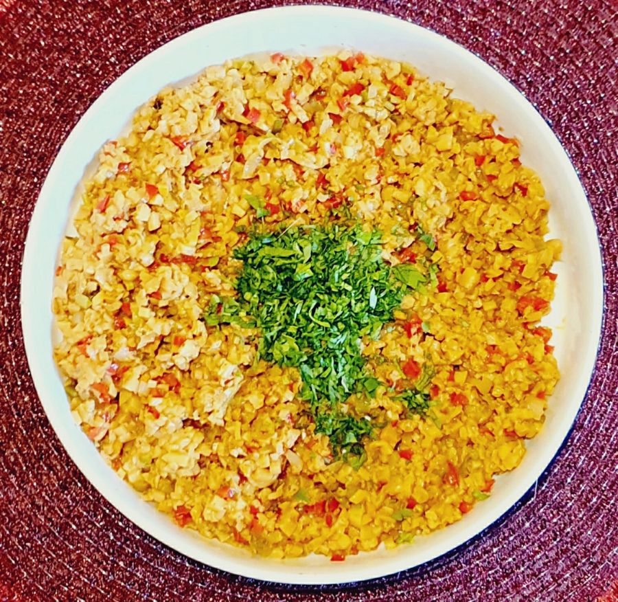 Die Flüssigkeit, die aus den Pilzen austritt, verkochen lassen. Mit Gemüseliebling, Taco & Salsa, Pfeffer und Petersilie würzen, abschmecken und eventuell noch Salz hinzufügen. Zur Seite stellen.