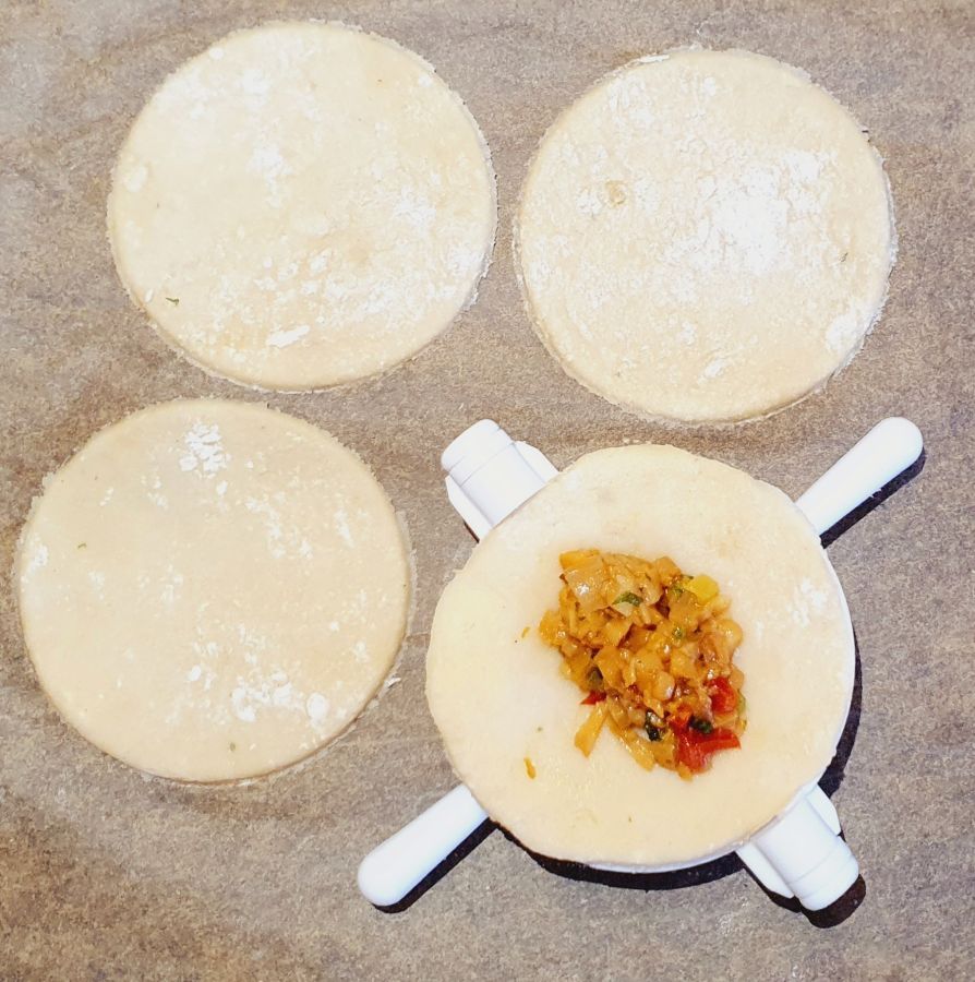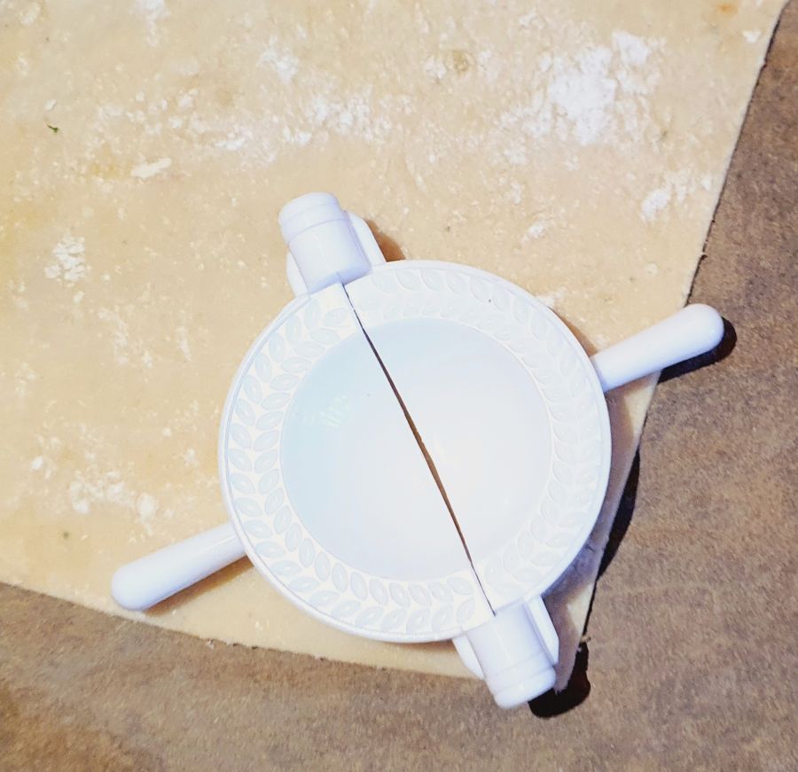 Mit dem Teigtaschenformer Kreise ausstechen.