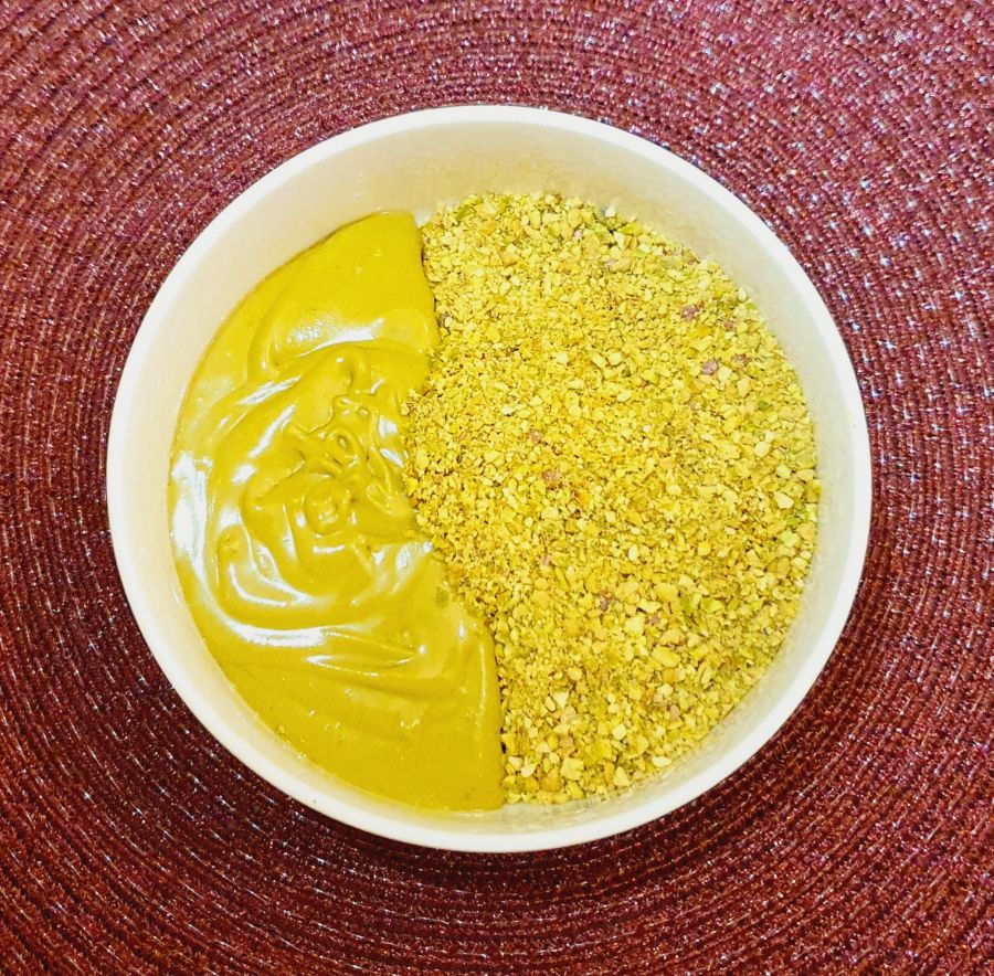 Für die Fülle Pistazien mahlen (nicht ganz fein), mit Nuketo und Süße gut vermischen und zur Seite stellen.