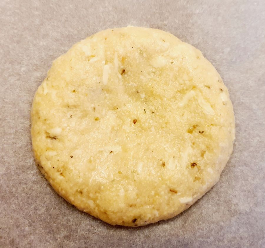 Aus Pizzateig, geriebenem Käse, Gewürzen und warmen Wasser einen Teig zubereiten lassen, und für ein paar Minuten ruhen lassen.