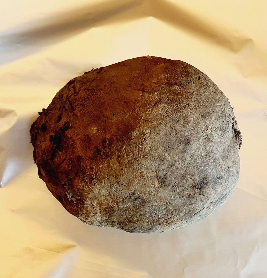Rote Rübe in Alufolie wickeln, auf ein Gitter legen und für 1 h bis 1h 20 (kommt auf die Größe an) bei 190 Grad im Backrohr backen. Nach dem Backen die Folie öffnen, und die Schale abziehen.