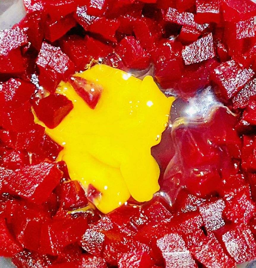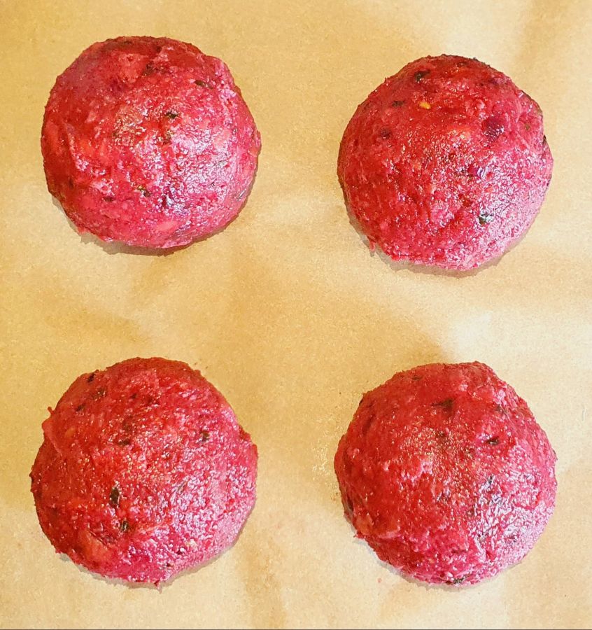 Die Roten Rüben-Mischung, Gewürze, Zitrusfaser, gerieben Käse hinzufügen und durchmischen.