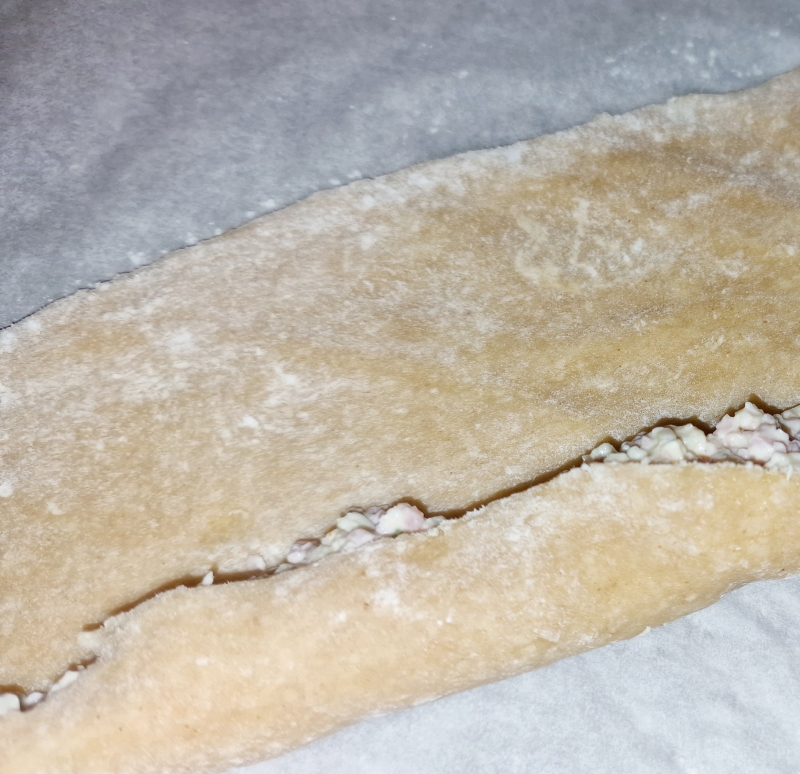 Hinweis: Die Füllung sollte nicht zu flüssig sein. Der Käse wird gebraucht, weil er quasi verklebt und den Teig nicht aufweicht.