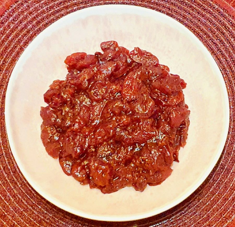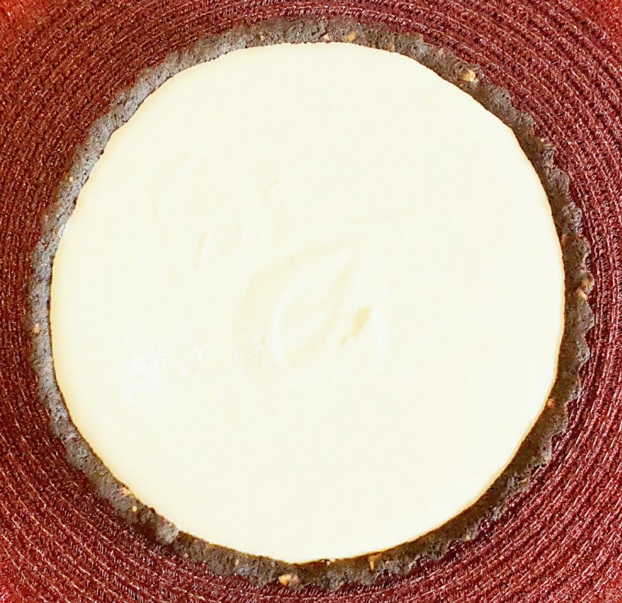 Zum Fertigstellen, die Kirschmasse gleichmäßig auf den Keksboden streichen.