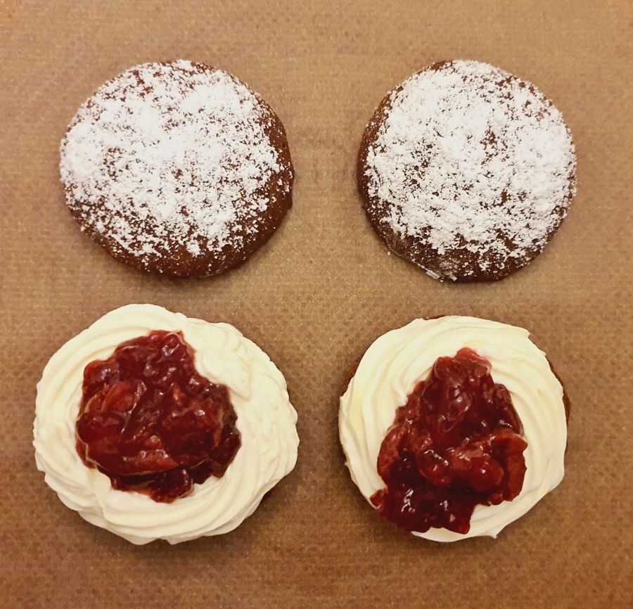 Es können die Anschnitte der Berliner mit Kirschwasser beträufelt werden.