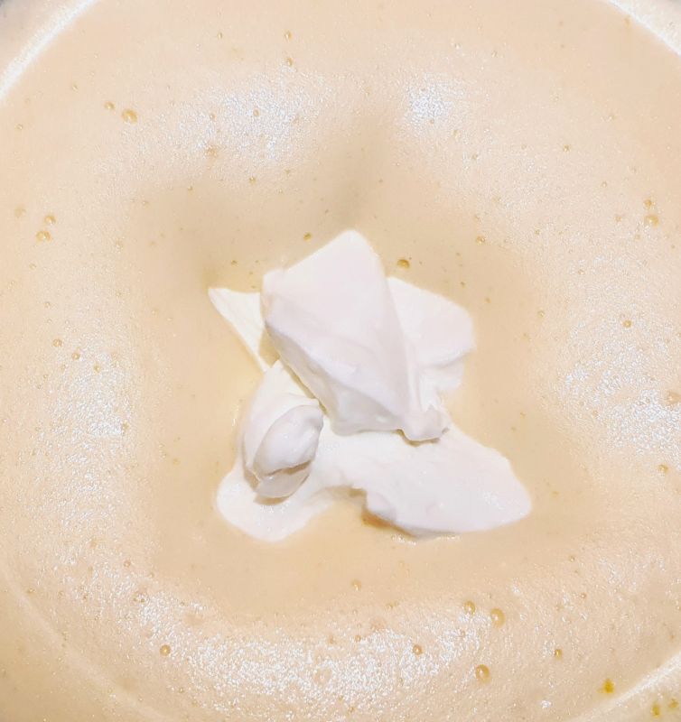 Langsam löffelweise unter die Ei/Skyrmischung untermixen.