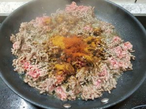 Das Hackfleisch in Butterschmalz anbraten und mit Salz, Hackfleisch Liebling und Taco & Salsa würzen.