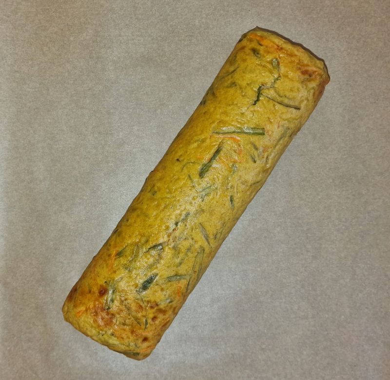 Ein Blech, meines hatte 35x25 cm, mit Backpapier auslegen. Backofen auf 150 Grad Umluft vorheizen. Den Teig aufs Blech gießen und für 30 Minuten bei 150 Grad backen. Nach dem Backen vom Blech auf ein Gitter drehen und das Backpapier vorsichtig abziehen. Mit Hilfe eines Küchentuch die Pancakeplatte aufrollen und auskühlen lassen.