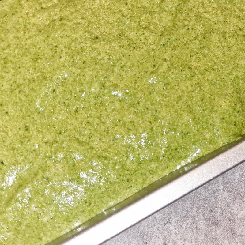 Backblech mit Backpapier auslegen und die Masse aufs Blech gießen.