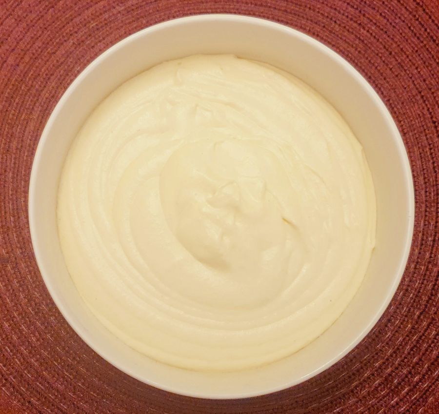 • Saure Sahne, Buttermilch, Quark, Frischkäse, Süße, Saft der Zitrone, Pure Flavour, Puddingpulver, Rahmquarkpulver und Zitrusfaser zu einer glatten Masse vermixen.