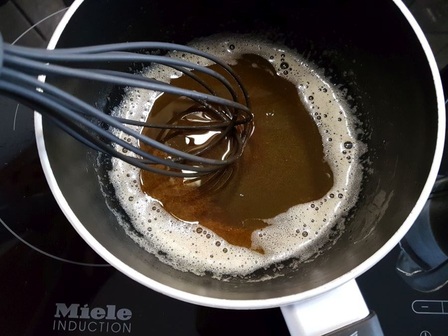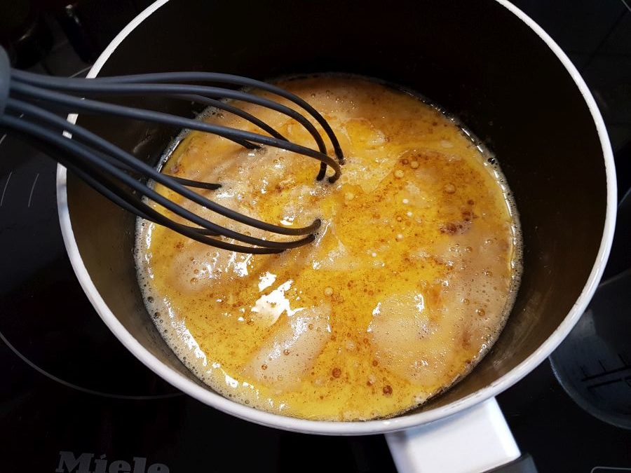 Dieses Rezept ist von den Zutaten her identisch mit dem Basis-Rezept für low-carb Vanillesauce. Der Trick bei dieser Sauce besteht aber darin, die Butter zuerst zu bräunen, so dass sie ein phantastisches Aroma und eine appetitliche karamellige Farbe an die Sauce abgibt.