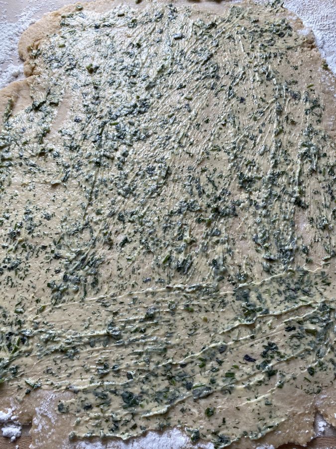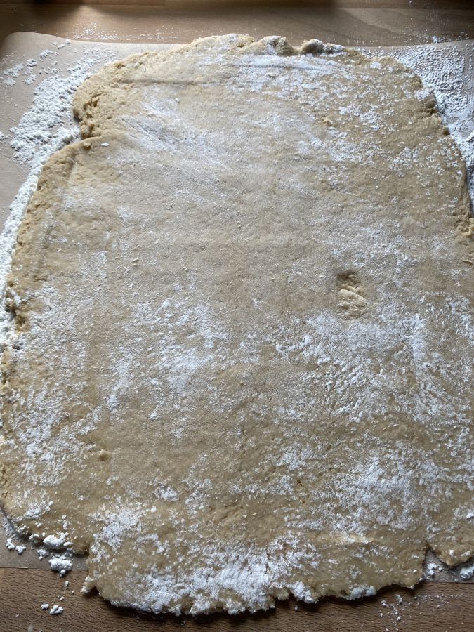 Die Enden an der Seite etwas einschlagen. Die Platte in der Mitte mit einem Messer teilen.